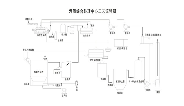 將干燥好的污泥結合各地區(qū)收集來的一定量(與熱解氣化爐相對應)的垃圾直接投入熱解氣化爐,利用垃圾本身熱值強制性地產生可燃氣體,從而達到垃圾資源化。本套系統(tǒng)由于是穩(wěn)定燃燒,設備使用壽命長。勞動環(huán)境好,沒任何臭氣且占地面積小,營造了一種綠色工廠環(huán)境。